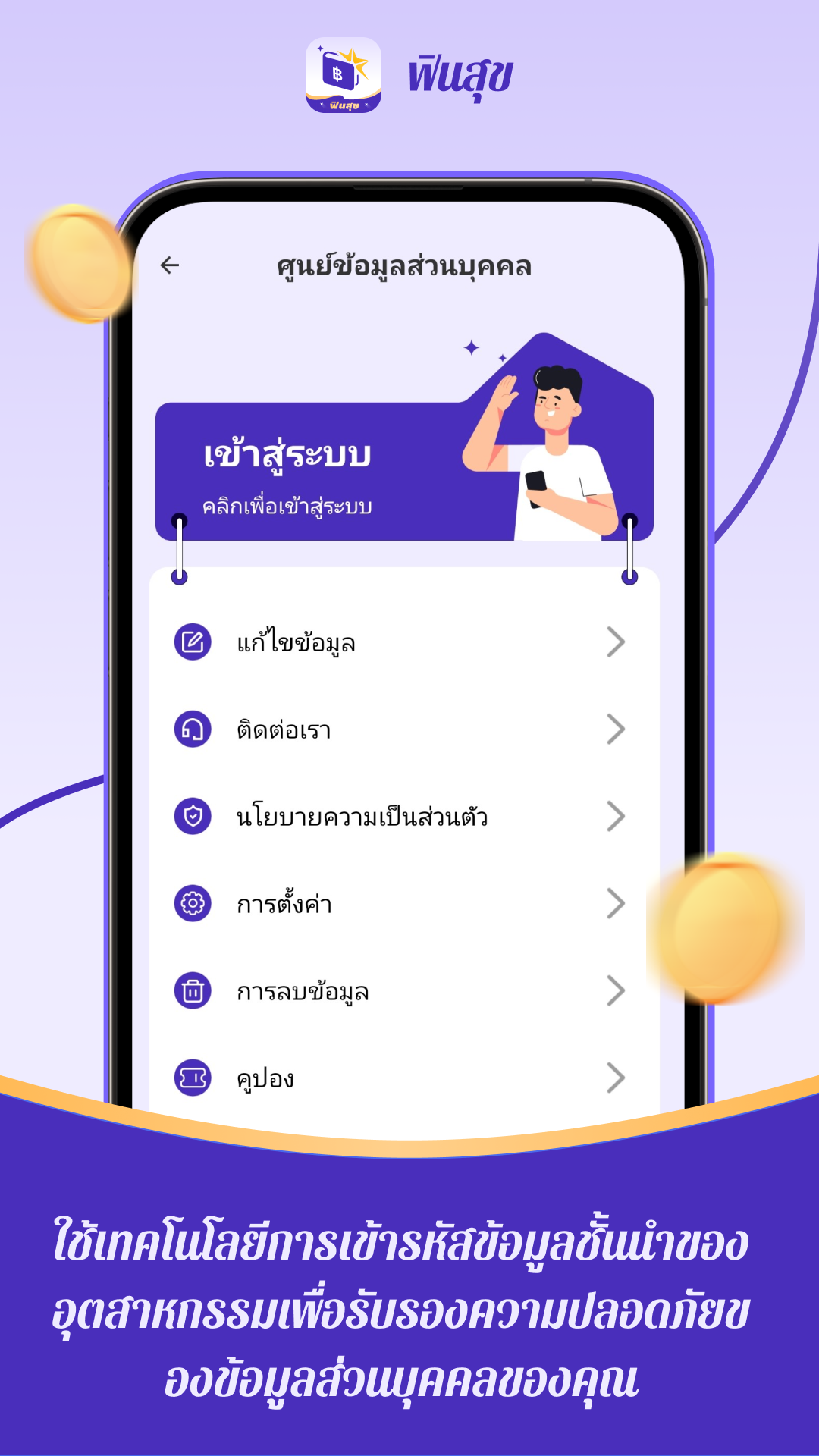 ดาวน์โหลดและติดตั้ง ฟินสุข จาก Google Store สร้างบัญชีและยืนยันตัวตนให้เสร็จสมบูรณ์ โดยใช้หมายเลขโทรศัพท์มือถือของคุณ